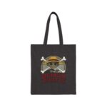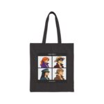 The bag itself? Heavy 12 oz cotton canvas, built to last way longer than it has any right to. 15" x 16" with 20" handles — fits everything, holds up through everything. Colors stay vivid, structure stays solid. Sewn-in label, available in natural and black.