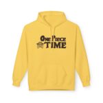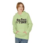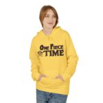 Front: clean chest logo, "One Piece Time" — bold, slightly worn, like you've been on the crew a while. Flip it and Luffy meets Jake, fists up, full chaos. The kind of design that sparks a conversation before you even say a word.